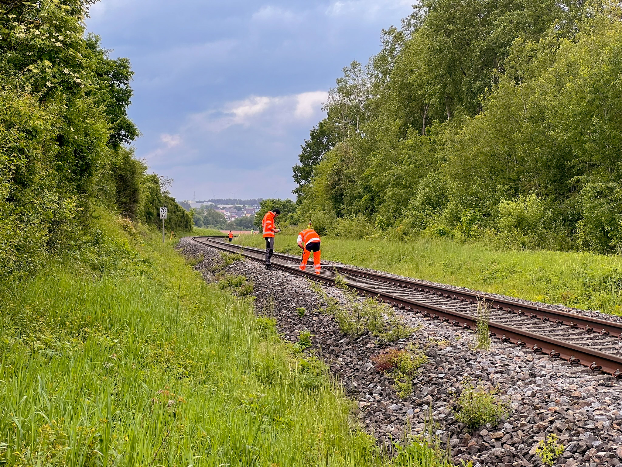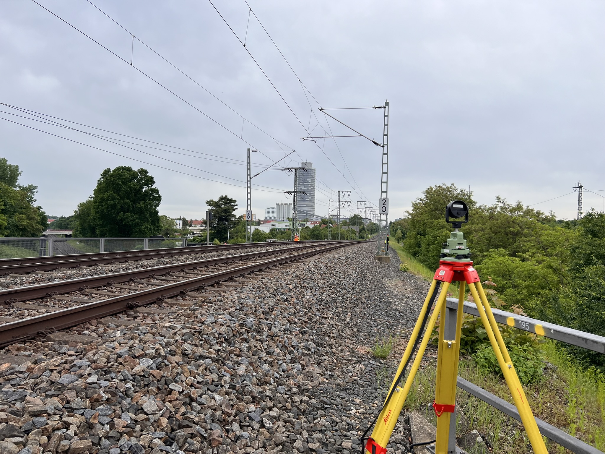 Die Planungen für die Metropolenbahn schreiten voran! Aktuell finden Vermessungen auf dem Streckenabschnitt zwischen Nürnberg-Dutzendteich und Nürnberg-Mögeldorf, an den Stationen Lauf l.d.Pegnitz und Röthenbach a.d.Pegnitz, sowie auf dem 130 km langen Abschnitt von Hartmannshof bis zur deutsch-tschechischen Grenze bei Furth im Wald statt. Für die Grundlagenermittlung ist es notwendig, alle Daten über Gleisabschnitte und bestehende Bauwerke genau zu kennen. Zum Beispiel nutzen wir bisher auf den Streckenabschnitten unterschiedliche Referenzsysteme. In Zukunft verwenden wir ein einheitliches System: DB REF 2016. Dafür müssen die umfangreichen Trassendaten berechnet und in Plänen zusammengeführt werden.