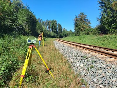Es geht voran! Seit Mai 2025 finden auf der Bahnstrecke zwischen Schnabelwaid und Bayreuth Vermessungsarbeiten statt. Sie dauern voraussichtlich bis Ende des Jahres an. Ziel ist es, eine präzise Datengrundlage für die weitere Planung zu schaffen.